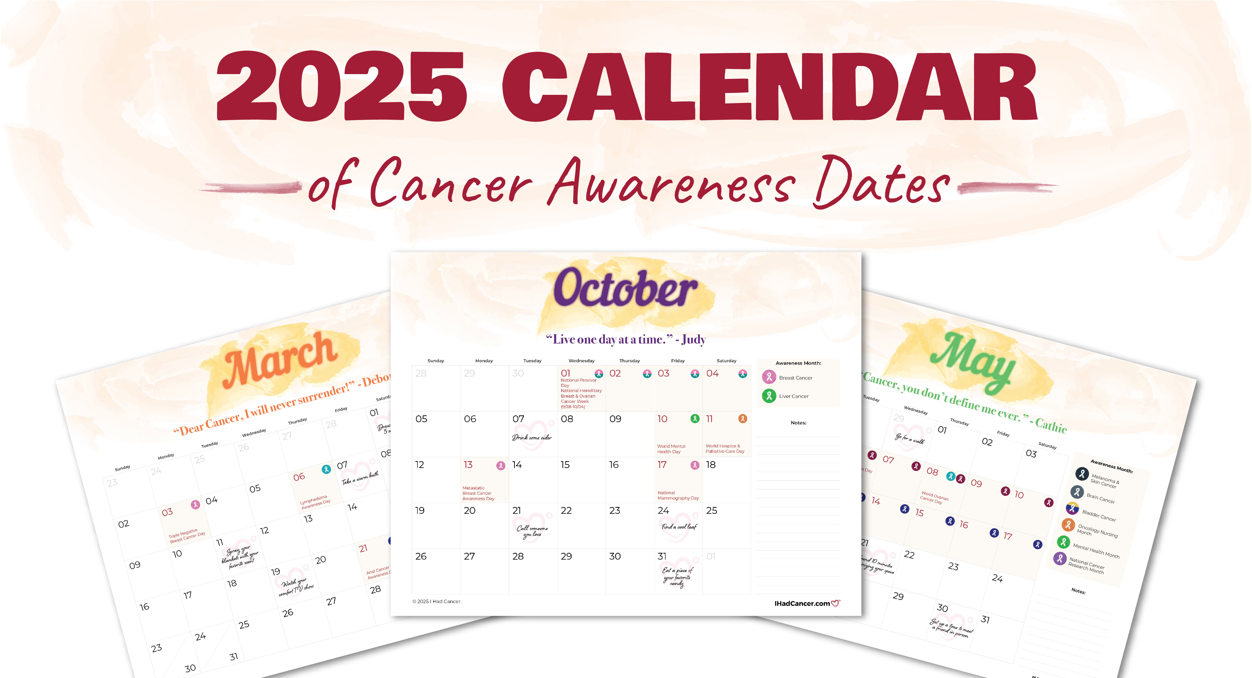 IHadCancer's 2025 Calendar of Cancer Awareness is available now! Register for our newsletter to receive a free calendar.